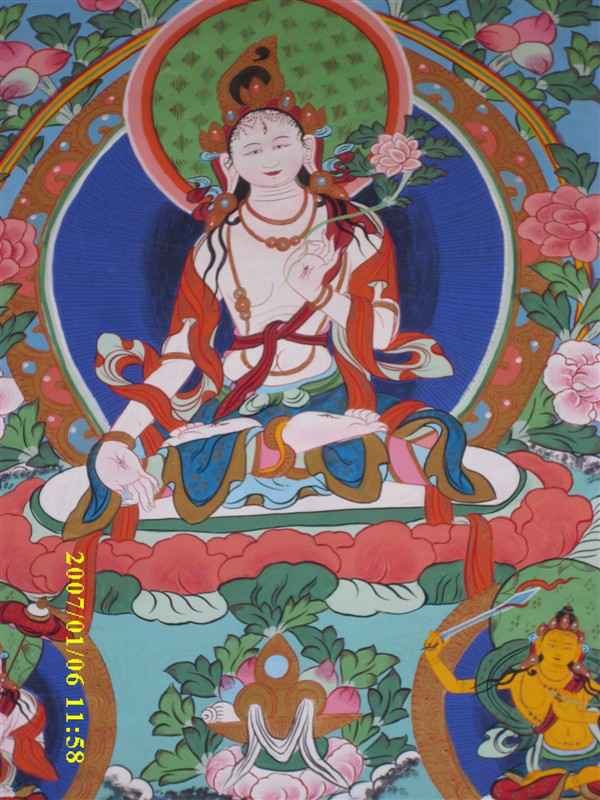 藏族绘画的艺术价值主要体现在绘制工艺上。用色非常丰富,配色种类高达一百六十种之多,所有颜色都源于五种基本色—白、红、绿、蓝、黄,再通过不同比例调制出各种颜色,由此可见画师配色的细腻。他们对颜色的应用、提炼,形成了独特的色彩制作、调配和使用技术。这些色彩颜料经过画师灵巧的双手,造就了藏族艺术的生命与辉煌,使其以色泽艳丽鲜亮、愈久弥新而铸成于世。