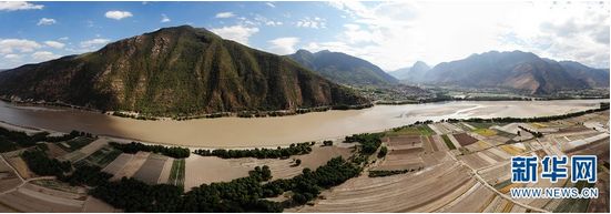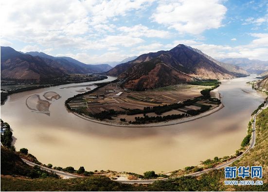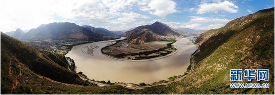 “长江第一湾”位于云南省丽江市石鼓镇与香格里拉县沙松碧村之间。长江从青藏高原奔腾而下,从四川甘孜州巴塘县进入云南,与澜沧江、怒江一起在横断山脉的高山深谷中穿行形成了“三江并流”的壮丽景观。到了石鼓镇和沙松碧村之间,突然来了个100多度的“急转弯”,形成罕见的“V”字形大弯,人们称这天下奇观为“长江第一湾”。