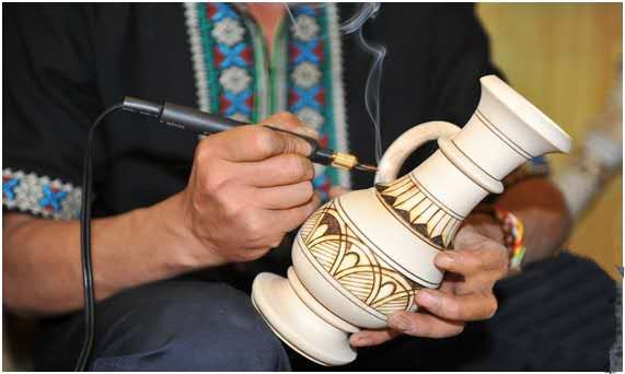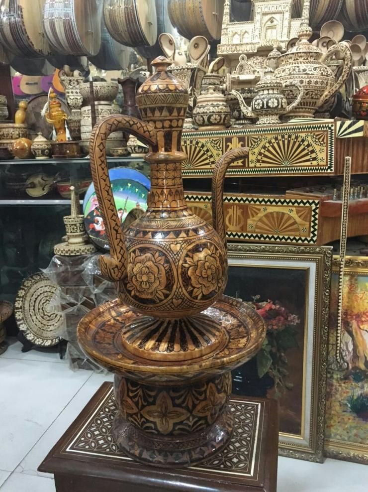喀什木雕艺术,喀什独有,充满智慧的维吾尔族人在整颗原木上进行锯、砍、磨、凿等工艺,以植物枝蔓、花、蕾、果实等形式表现,显现浓郁的地方民族特色。