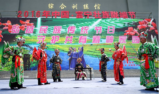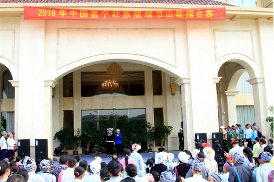 “陇端街”又叫‘花街”,是聚居在广南、富宁等地壮族人民一年一度最隆重的民族传统节日,于每年农历正月到3月的农闲时间举行,历时3到5天。“陇端”是壮语,意思是在田坝、草坪上赶的街。宽敞开阔的草坪、田坝、天高地广,好尽情地欢聚跳舞、摆舞台、唱壮戏,同时,也便于进行集市贸易活动。青年男女们则主要开展对歌比赛,借此谈情说爱。当对歌告一段落后,已选好意中人的未婚男女,一对对相随相依,步入树林。许多壮族的青年男女就是通过这样的对歌交往之后配成佳偶的。